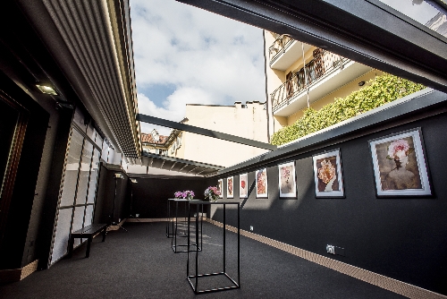 La particolare disposizione di questa location versatile ruota attorno al suggestivo gazebo che, come una sorta di giardino di inverno, ricrea una raffinata oasi verde nel cuore della città.