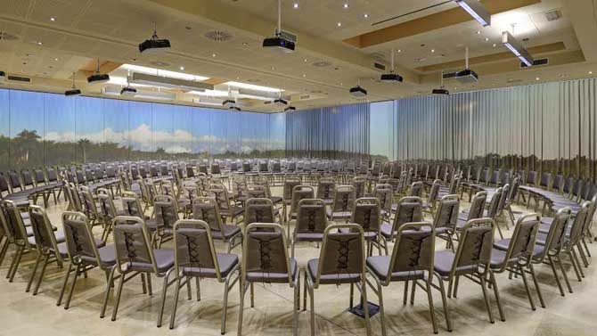 La sala plenaria immersiva dell’Enterprise Hotel è un eccezionale marketing tool per raccontare il proprio brand in modo originale ed empatico. Room360° è ideale per proporre il lancio di prodotti, per offrire un ‘assaggio’ di destinazioni lontane, per celebrare anniversario ricorrenze, sfogliando insieme ‘l’album di famiglia’, per presentare in anteprima nuove collezioni, per spettacoli, per organizzare breakfast a L’Avana, colazioni a Stoccolma o cene a New York, il tutto senza prendere l’aereo, o per passeggiate nei boschi o sui tetti e così via.