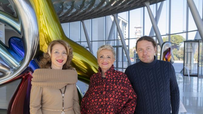 Il simbolo dell’infinito da un lato, una figura dall’anima femminile dall’altro. Sono firmate Maria Luisa Tadei (nella foto a sinistra, insieme a Stefania Agostini e Matteo Sormani), le due sculture che da ieri impreziosiscono gli spazi del Palacongressi di Rimini, grazie a un accordo tra la divisione Event&Conference Division di Italian Exhibition Group e l’artista contemporanea, nota sia in Italia sia all’estero. Una delle sue opere è stata recentemente esposta fuori dagli uffici del Times di Londra e due suoi lavori sono attualmente al prestigioso Yorkshire Sculpture Park, nel nord dell’Inghilterra.