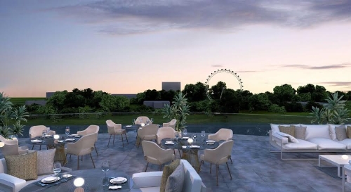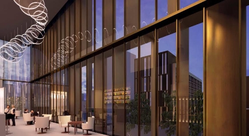 Sul lato verso il fiume, la sinuosità dell'edificio è accentuata dall’utilizzo di vetrate curve che seguono l’andamento del perimetro, di notte l’edificio si trasforma in una 'lanterna', un landmark visibile da tutto il lungo fiume.