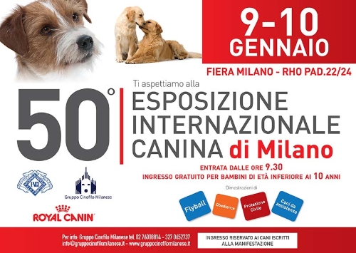 Sabato 9 e domenica 10 gennaio va in scena a Fiera Milano (Rho) l'Esposizione Internazionale Canina. Quest'anno la rassegna festeggia la sua cinquantesima edizione. Si tratta della più importante manifestazione italiana di cinofilia, ed è organizzata dal Gruppo Cinofilo Milanese.
