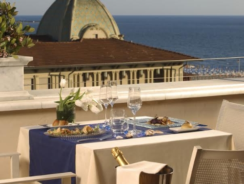 Il setting è di assoluto prestigio: la sala al quinto piano, con vista sul mare e sulle Alpi Apuane, o la splendida terrazza a bordo piscina sul roof garden.