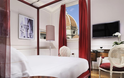 La location d’eccezione, la stupenda vista panoramica di cui godono diverse stanze sulla cupola del Duomo e il campanile di Giotto, l’ambiente raffinato e curato nei minimi particolari, la ristorazione gourmet, sono alcuni degli atout di questo indirizzo storico e di charme.