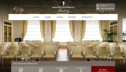 Spazi specifici del sito sono poi dedicati alle offerte, alla geolocalizzazione e alla richiesta di preventivi. Va ricordato che il Grand Hotel Principe di Piemonte è anche fra gli alberghi più dotati in Italia di tecnologie meeting. Ha una fibra ottica capace di 30 mega in Wifi o con connessione LAN, e per i meeting c’è la possibilità di riservarla in parte, così da evitare rallentamenti nella connessione e assicurare massima efficienza alla Rete.
