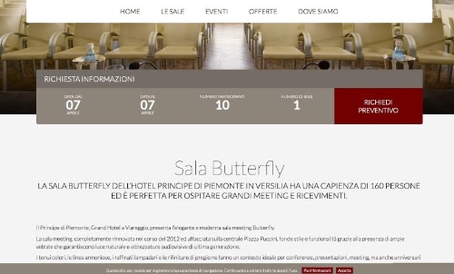 La struttura del sito è semplice e offre molto spazio ai contenuti. Attraverso la sezione 'Le sale' si possono apprezzare architetture e spazi nonché ottenere informazioni dettagliate di tutte le sale riunioni dell’albergo: la nuova sala centrale da 250 posti, la Butterfly (160 posti), la Turandot e la Musetta (30 posti ciascuna), la Tosca (8 posti), la sala interna del ristorante Regina, che può contenere 30 posti circa, la biblioteca e la veranda.