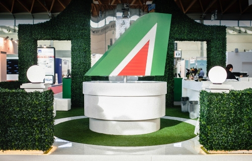 Per Alitalia, PalazziGas Events ha creato uno spazio espositivo accogliente e raffinato, in grado di raccontare quei capitoli della storia e dello stile del Paese che hanno contribuito a rendere la compagnia un’icona nel mondo per comfort ed eleganza.