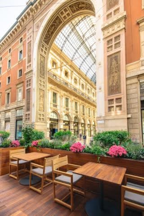 Ultimo atto del processo di rinnovamento avviato con l’apertura del nuovo Bar. Essendo l’estensione del MIO, il Dehors è il punto di riferimento per il rito dell’aperitivo e offre la vista sulla Galleria da un ambiente riservato ed esclusivo.