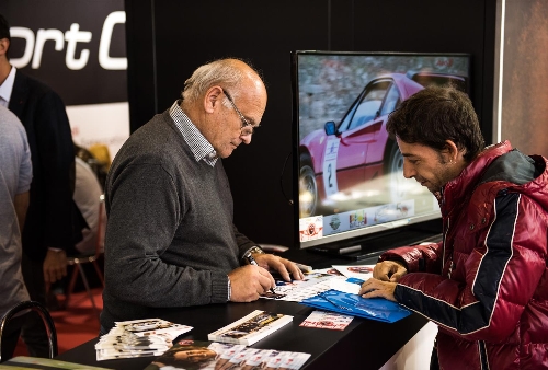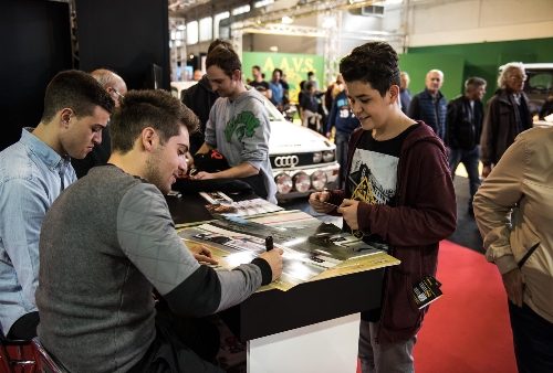 Piloti Audi di ieri e di oggi nello stand Audi alla fiera Auto e Moto d'Epoca 2015