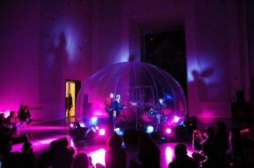 Come La Bolla. Scenario decisamente insolito per la musica dal vivo: uno spazio di soli quattro metri di diametro racchiuso all’interno di una semisfera totalmente trasparente. Un concept sviluppato per consentire la creazione di un ecosistema a se stante e permettere azioni artistiche mirate anche in contesti non necessariamente di palco. Messa a disposizione dall’Impresa Sociale Borghi Artistici, garantisce l’alta qualità tecnica delle prestazioni grazie alla dotazione di innovativi sistemi audio, illuminazione led e la disponibilità di ogni accessorio per la massima versatilità.