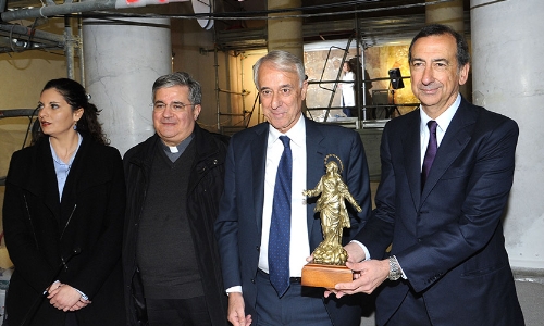 L’opera è la prima copia esatta in bronzo mai eseguita della celebre scultura di Giuseppe Perego, che brilla al sole sulla guglia più alta del Duomo di Milano.