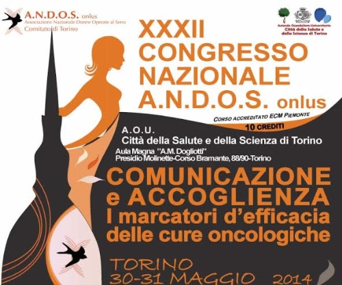 Dal 29 al 31 maggio circa 150 rappresentanti dei 63 Comitati A.N.D.O.S. Onlus (con oltre 18mila volontari) provenienti da tutta Italia, giungeranno a Torino per il XXXII Congresso dell’Associazione Nazionale Donne Operate al Seno presieduto dalla dottoressa Fulvia Pedani, Presidente Comitato di Torino e Coordinatore Nazionale, oncologo della S.C. Oncologia Medica 2 dell'A.O.U. Città della Salute e della Scienza di Torino - Direttore Mario Airoldi.