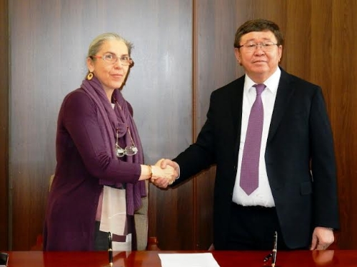 (FOTO: Maria Criscuolo, presidente e fondatore di Triumph Group International, e il presidente della Mongolia Cahiagijn Elbegdorž)