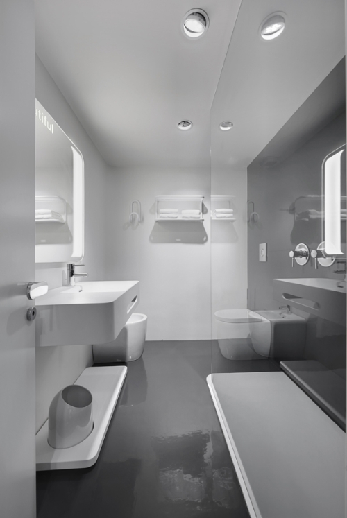 Ed è con un repentino balzo che l’ospite fa il suo ingresso nelle nuove camere dove il grigio ed il bianco degli arredi, delle pareti e della pavimentazione contribuiscono a dare vita ad un’atmosfera luminosa e accogliente.