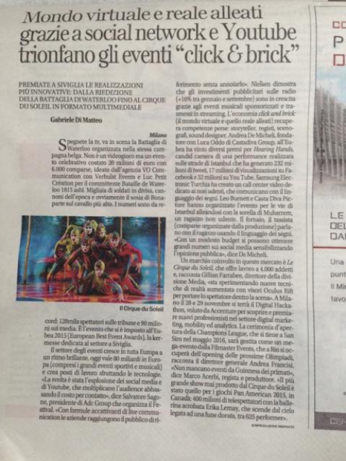 A tal proposito, è di oggi un articolo di Affari e Finanza di Repubblica (FOTO 4) in cui si parla di questo concetto citando case history e testimonianze dell'EuBea Festival: non solo il caso della commemorazione della battaglia di Waterloo, ma anche altri eventi vincitori.