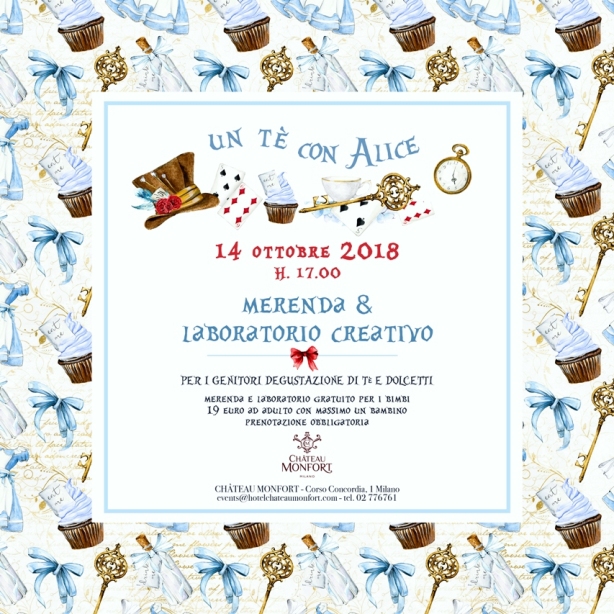 A Château Monfort, l’hotel 5 stelle milanese ispirato al mondo delle fiabe del Gruppo Planetaria Hotels, domenica 14 ottobre 2018 alle ore 17 nuovo appuntamento per grandi e piccini alla scoperta del magico mondo di Alice e di Bianconiglio.