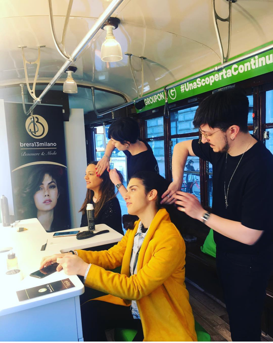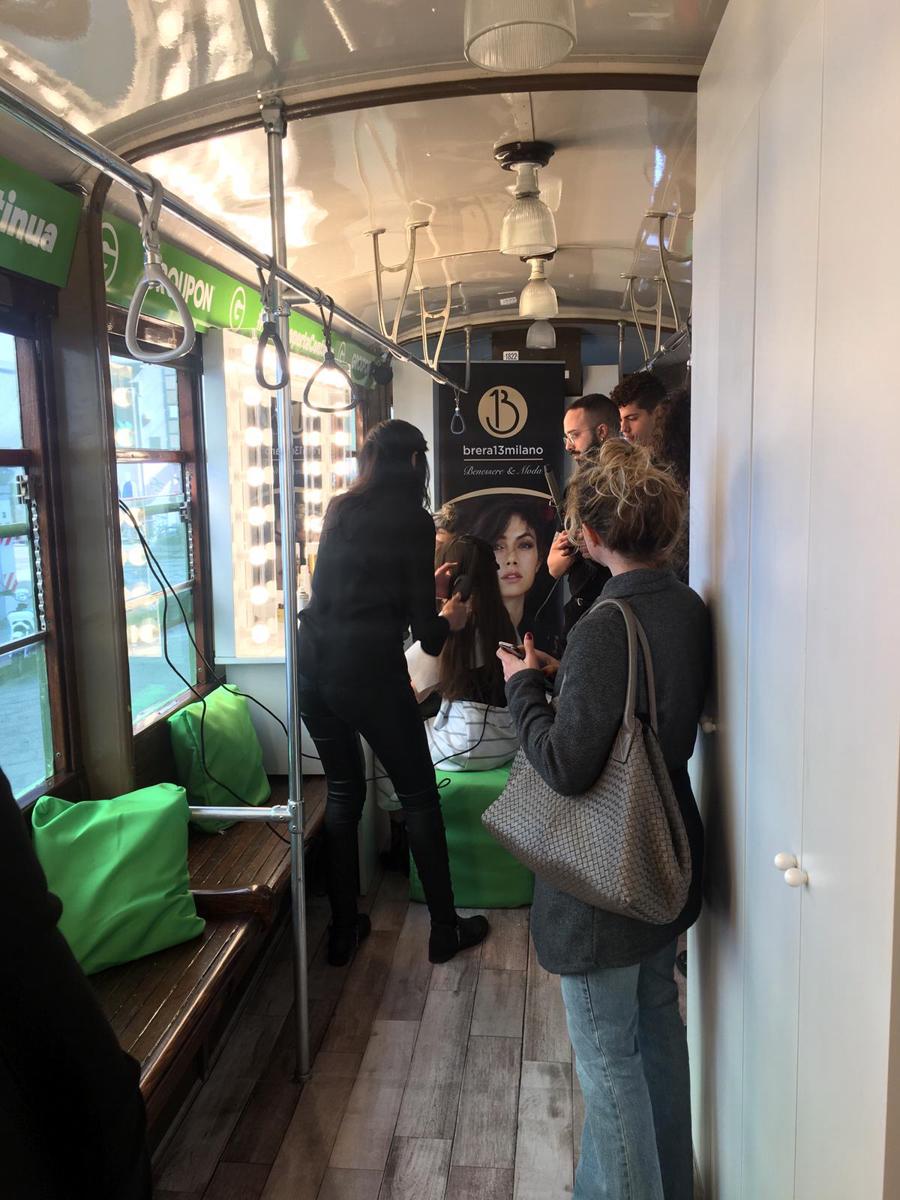 L’interior design trasforma il tram in un vero e proprio salone di bellezza, con due postazioni hair dresser gestite da professionisti del centro benessere Brera 13 a Milano.
