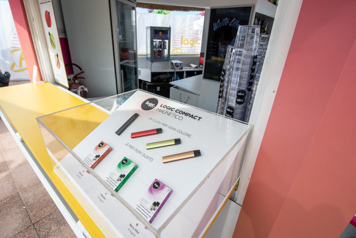 Logic Compact è un vaporizzatore dalle dimensioni ridotte, che combina gusto, design e facilità d’uso, studiato per offrire una nuova esperienza di consumo. Disponibile in tre diversi aromi (mentolo, tabacco, berry-mint), il dispositivo è inoltre personalizzabile direttamente presso lo store sulla spiaggia, scegliendo tra oltre 20 fantasie e 4 colori.