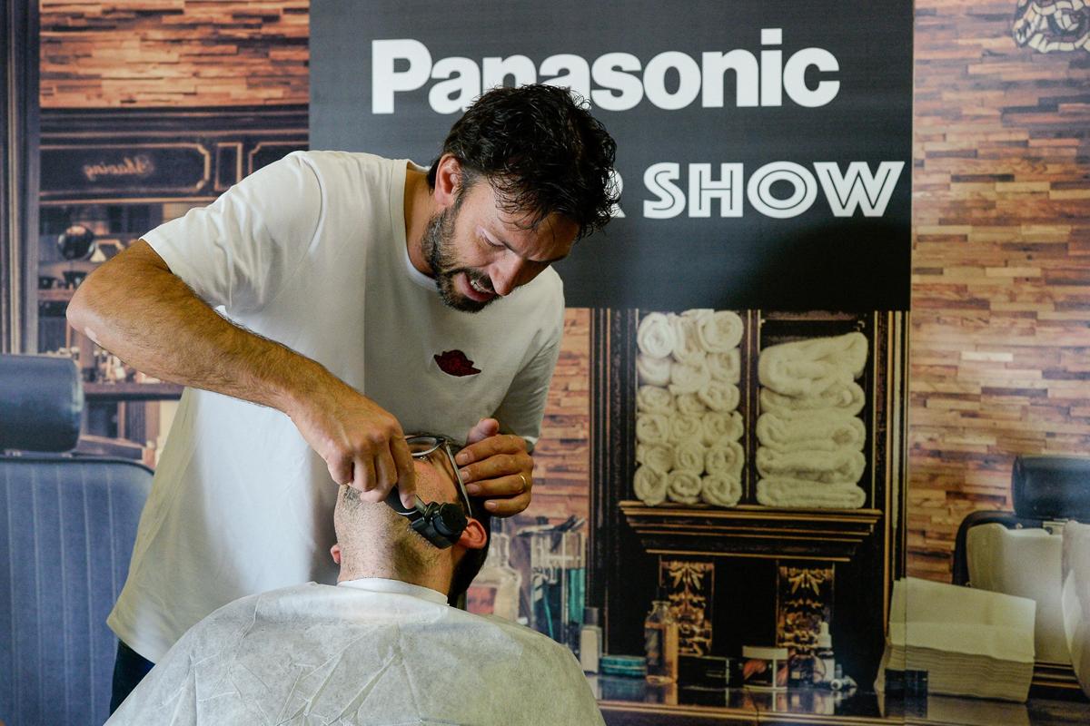 Panasonic Barber Show, tutti in fila per farsi radere dal campione di basket Andrea Meneghin