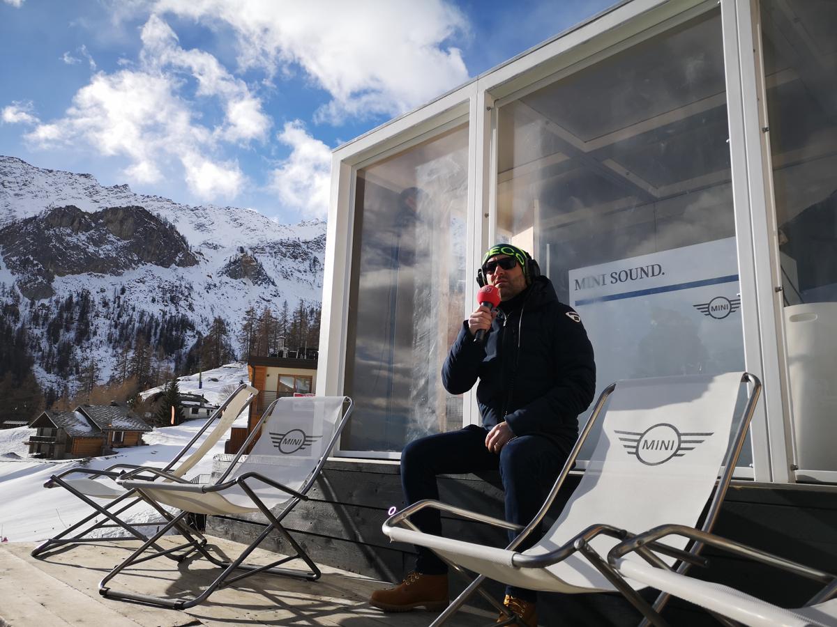 La musica sarà accompagnata dalla voce del conduttore Paolo Piva che, dalla terrazza Mini, condurrà in diretta il weekend “d’alta quota” targato RDS. Piva, esperto co-pilota di rally, trasferirà agli ascoltatori e agli ospiti che affolleranno la terrazza più famosa di Courmayeur, anche il fascino del go-kart feeling Mini. Il Super G rappresenta per la casa automobilistica la location perfetta per raccontare la trazione integrale ALL4 attualmente disponibile sui modelli Mini Countryman e Mini Clubman.