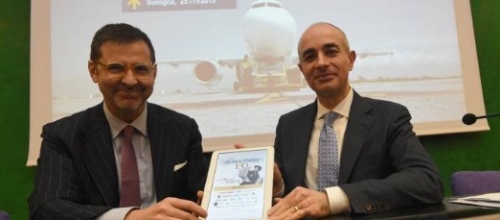 (FOTO: Pierluigi Masini, direttore Progetti e Iniziative Editoriali di Poligrafici Editoriale e Nazareno Ventola, direttore generale e amministratore delegato dell’Aeroporto Marconi di Bologna)