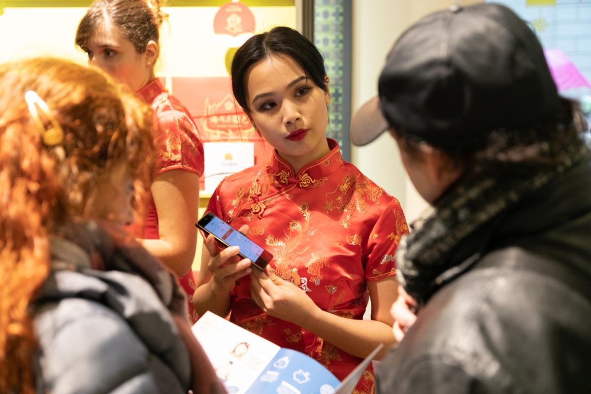 L’evento, svoltosi domenica 10 febbraio 2019, è stato l’occasione per sperimentare insieme a clienti italiani e ai turisti asiatici nuovi percorsi di acquisto resi possibili dalle app mobili delle due società e da tag QRcode esposti nel negozio.