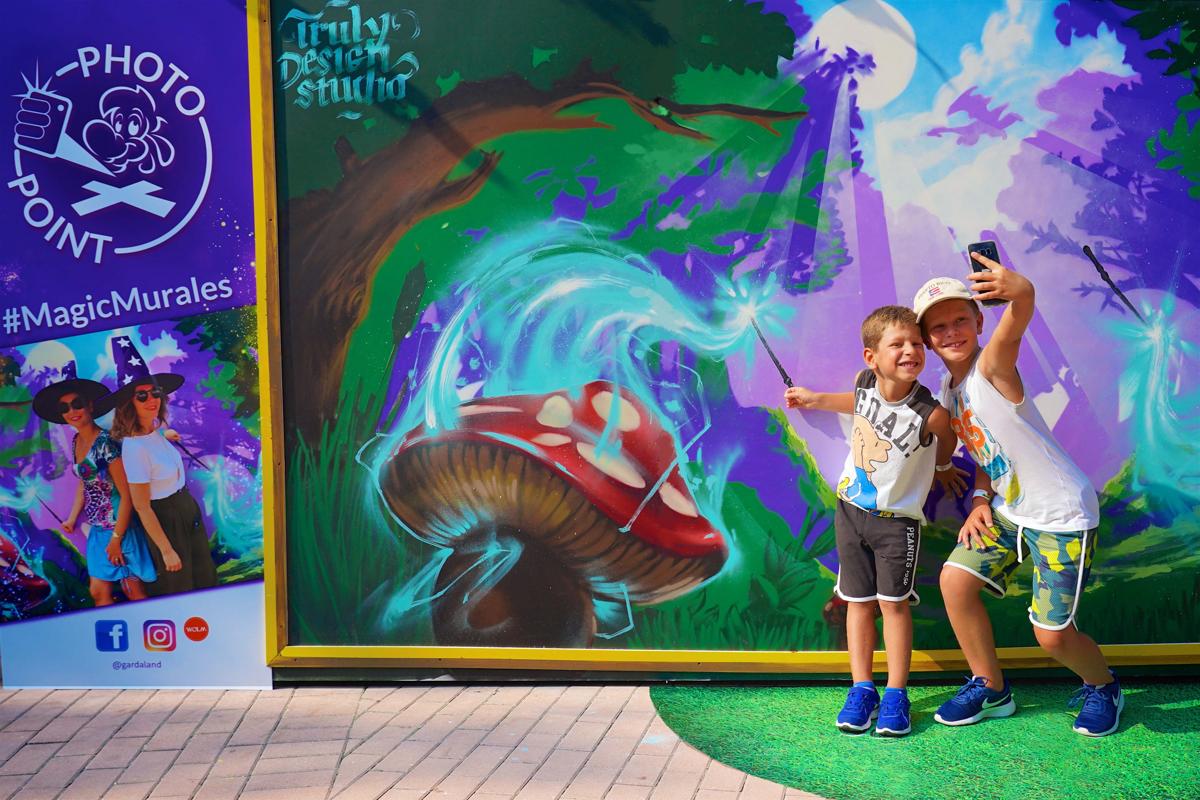 Un magico evento, quindi, che per tre giorni ha coinvolto gli ospiti del Parco che ad opera finita hanno scattato un selfie davanti al murales con le potenti bacchette magiche dipinte, ottenendo così l’effetto ottico di essere parte del disegno, proprio come i protagonisti di una magia. Un incantesimo che ha scatenato una vera battaglia sui social a suon di #magicmurales.
