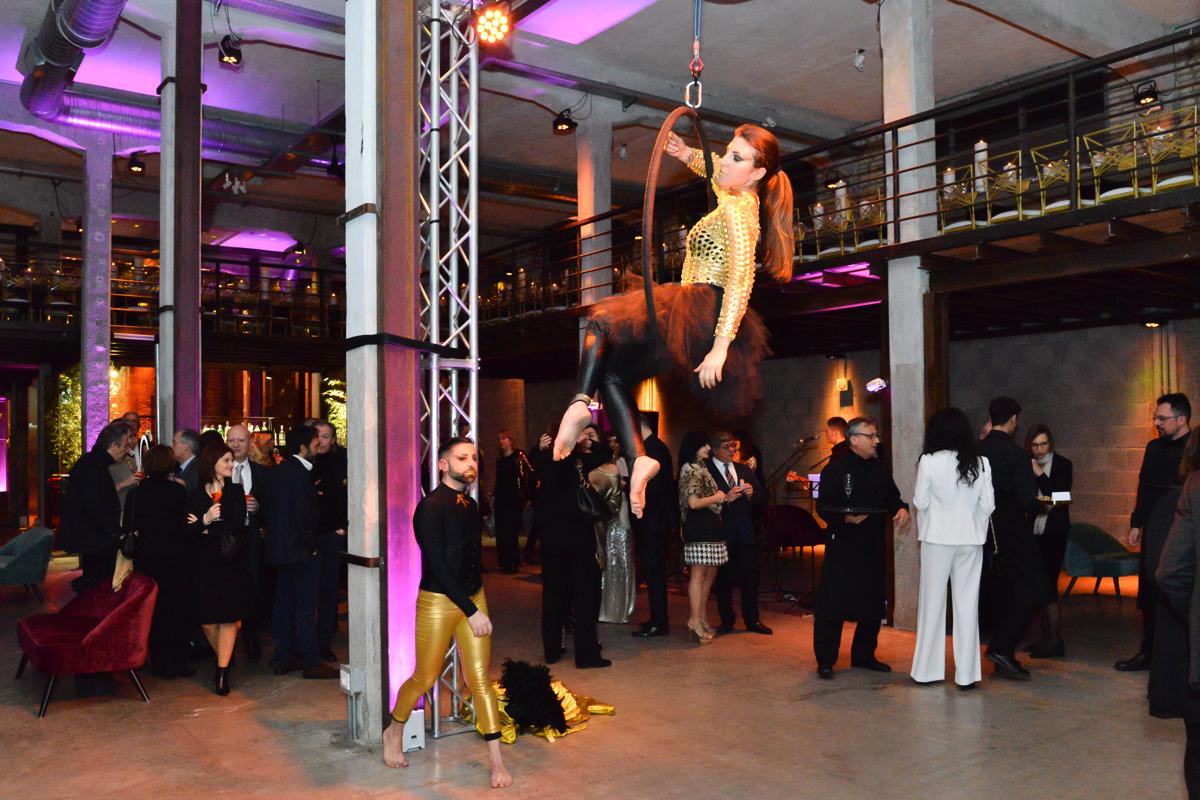 I 500 invitati sono stati accolti dall’esibizione di Rita Lynch, performer italiana burlesque di fama internazionale. Inoltre, la cantante Federica Buda, accompagnata al sax da Alessio Martignani, ha reintrepretato i più grandi successi delle dive del pop e della dance internazionale.