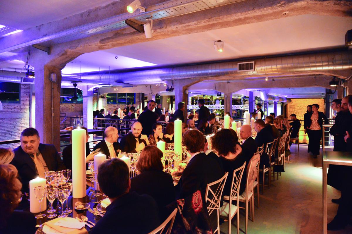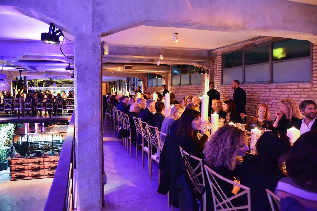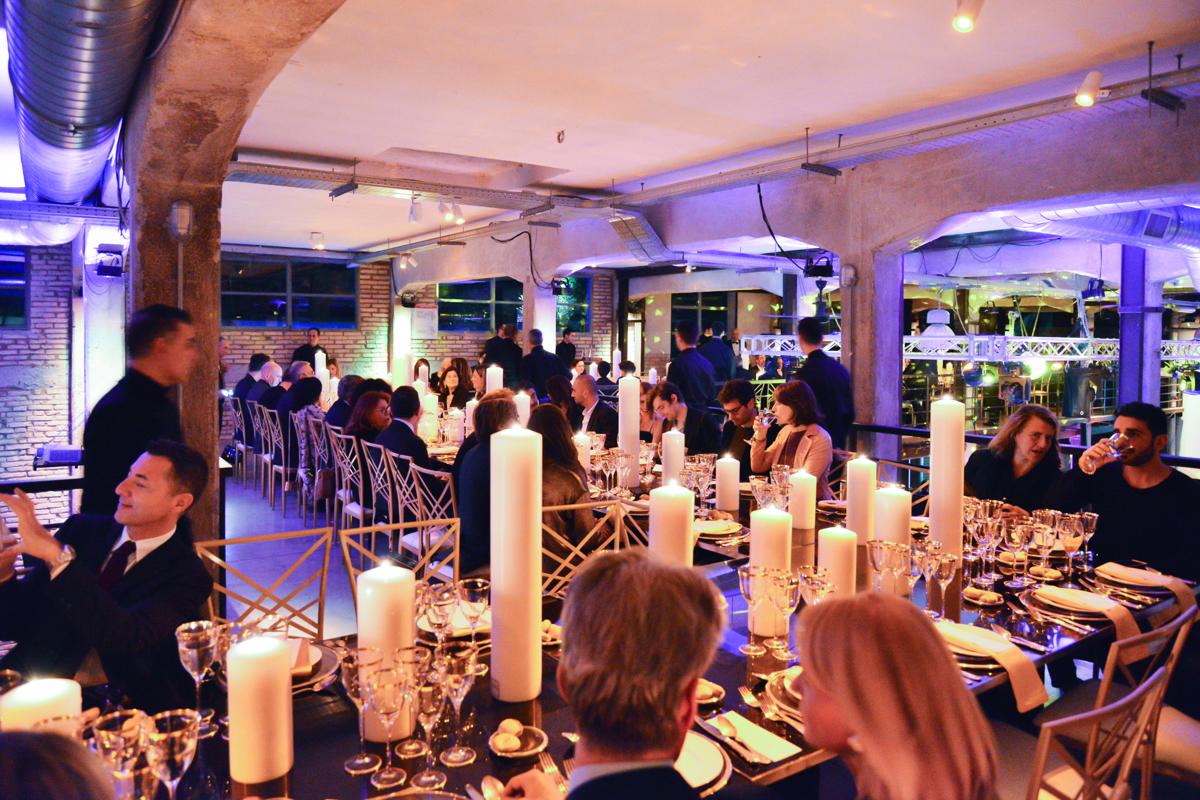La serata è iniziata alle ore 20,30 con una cena placée: 150 invitati, top client della struttura e degli sponsor partner, hanno cenato su un lunghissimo ed unico tavolo imperiale specchiato nero, allestito con sottopiatti posateria e bicchieri di design dai colori neri, bianchi e oro, illuminato da innumerevoli candele.