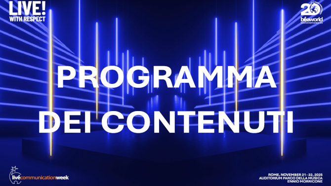 Seminari, workshop e formazione rappresentano una parte fondamentale del programma della kermesse internazionale targata ADC Group, che si svolgerà a Roma, il 21 e 22 novembre 2025 all'interno della Live Communication Week, format che nei due giorni precedenti (19 e 20) ospiterà anche il Bea Italia Festival presso il prestigioso Auditorium Parco della Musica Ennio Morricone.
