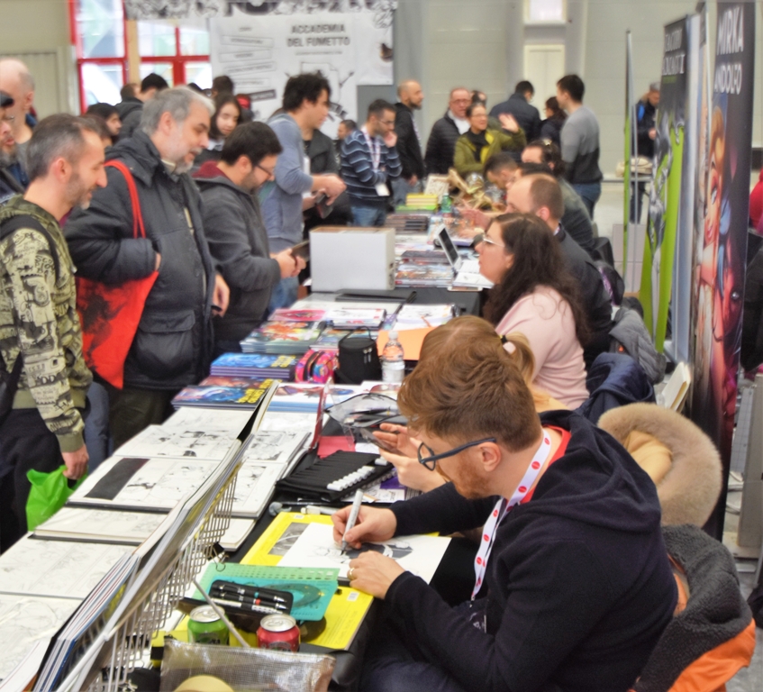 A partire dall’area fumetti che ha ospitato la più frequentata Artist Alley mai allestita in Italia. Cento artisti, molti di fama internazionale come Geoff Darrow, vincitore di tre Eisner Award, e Lee Bermejo, autore e sceneggiatore della pluripremiata graphic novel “Noel”, che con abilità e fantasia hanno realizzato sketch e disegni per i loro ammiratori.