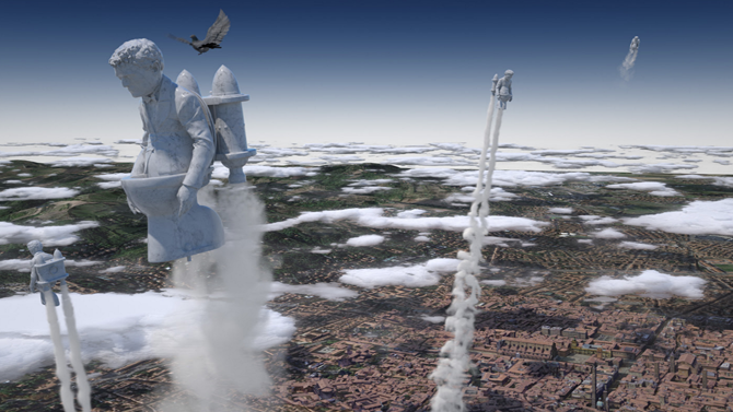 Leggero - Tributo a Freak Antoni, esposta al Museo della Musica di Bologna. È il tributo che Vitruvio Virtual Museum ha dedicato a uno degli artisti italiani più sovversivi e destabilizzanti della storia musicale del nostro paese. L’esperienza di realtà virtuale immersiva, dialoga direttamente con la scultura in marmo di Carrara realizzata dello scultore Daniele Rossi che ritrae Freak Antoni all’interno di un sanitario dotato di razzi. Attraverso la realtà virtuale i razzi vengono attivati e il fruitore dell’esperienza compie un viaggio su Bologna fra le note diLudovico Einaudi e i versi di Le onde leggero, delicata e sorpren-dente poesia dello stesso Antoni.