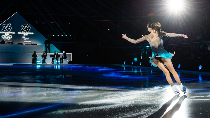 L’evento “Be Inspired” è stato strutturato in quattro atti e ha visto la partecipazione di atlete e atleti di oggi e di ieri. I quattro capitoli dell’evento, denominati rispettivamente Beauty, Passion, Change, Together, rappresenteranno il percorso verso i Giochi Olimpici e Paralimpici di Milano Cortina 2026. Per 90 minuti, su una pista di ghiaccio che ha fatto da palcoscenico, è andato in scena uno spettacolo all’insegna della bellezza, della passione, del cambiamento e dello stare insieme. Il palco come tela, le voci e i volti degli atleti come pennelli e colori, in un mix di elementi che disegneranno magnifiche storie di sport.