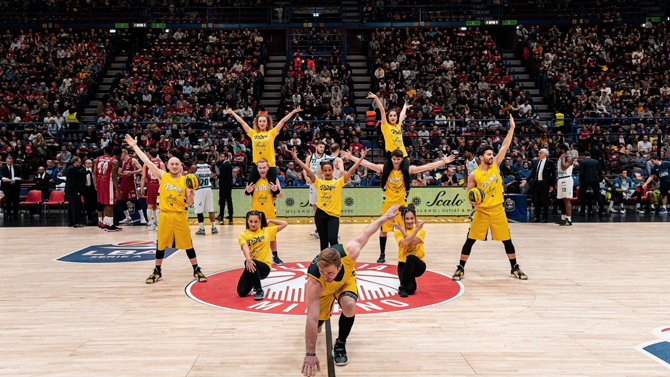 I Da Move hanno animato gli intervalli del match con tre coreografie spettacolari, tenuti da dunker e freestyler personalizzati con divise firmate Scalo Milano. In più, durante l’half time della partita la Da Move Crew si è esibita in uno show eseguito da tutti i performer in contemporanea con diverse gag con il pubblico, trick con otto o più palloni e sequenze aeree acrobatiche.