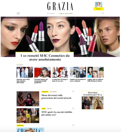 Insieme a Mac Cosmetics, Grazia racconterà alle sue utenti le novità e le tendenze che segneranno la moda dei prossimi mesi: l’iniziativa si sviluppa attraverso una branded story, in linea con il nuovo approccio native del sito. Lo storytelling, ricco di immagini esclusive, verrà amplificato attraverso le piattaforme social del magazine.
