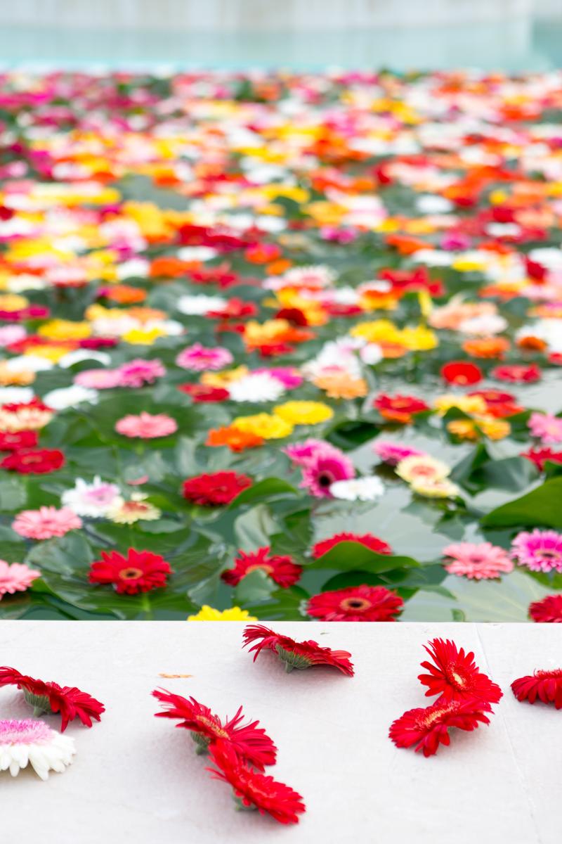 #flowerinvasion - il concept ideato e realizzato da Access - ha dato vita a una copertura di parte dello specchio d’acqua dei Bagni Misteriosi con oltre 10.000 gerbere fresche, e alla realizzazione di un’isola vera e propria dove poter sentire dal vivo ciascuna referenza, in un’ambientazione legata ai territori che hanno ispirato le nuove fragranze: i laghi di alta montagna per “Profumo di Primavera”, I ciliegi in fiore del Giappone per “Fiori di Ciliegio” e le terre di Sicilia per “Agrumi del Mediterraneo”.