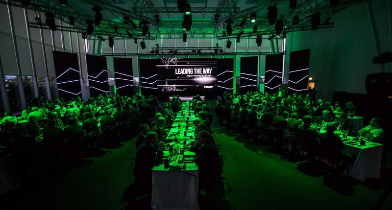 “La sfida posta dal cliente era offrire agli ospiti, che avevano già avuto modo in passato di visitare lo stabilimento, un’esperienza nuova e di forte impatto”, ha spiegato Gianluca Prina, Client Director di The Next Event. “La soluzione: dare anima allo stabilimento e invitare il pubblico all’interno della linea di produzione. Qui abbiamo messo a punto uno straordinario impianto scenotecnico e un vero e proprio show sospeso tra il reale e il virtuale”.