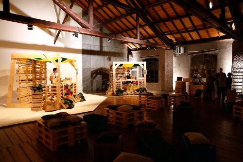 Il catering, curato dallo chef Andrea Vigna, ha permesso ai giornalisti di degustare ricette tipiche milanesi in stile street food, con tanto di bancarelle per il buffet, panchine, cassette della frutta e sacchi di juta come sedute.
