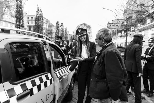 Per ogni tappa, gli autisti delle 12 Fiat Panda, in impeccabile divisa scura e cappello, improvvisano simpatici sketch e invitano i passanti a farsi dare un breve passaggio, rendendoli inconsapevoli protagonisti di un test drive che mostrerà le potenzialità del 'City Brake Control': un sistema anti-collisione che tra 5 e 30 km/h attiva una frenata di emergenza se rileva il rischio di un tamponamento.