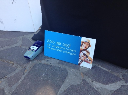 'Solo per oggi non accettiamo contanti ma solo carte prepagate'