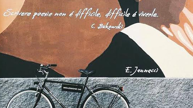 Il palinsesto delle attività sul territorio firmate GPE per il Moleskine Cafè di Milano è proseguito con più iniziative. Tra queste ha riscosso particolare successo la Moleskine BikeJam, viaggio alla scoperta di luoghi inediti della città che ha coinvolto 20 bikers a bordo di biciclette brandizzate Moleskine Cafè, realizzate in partnership con Rossignoli.
