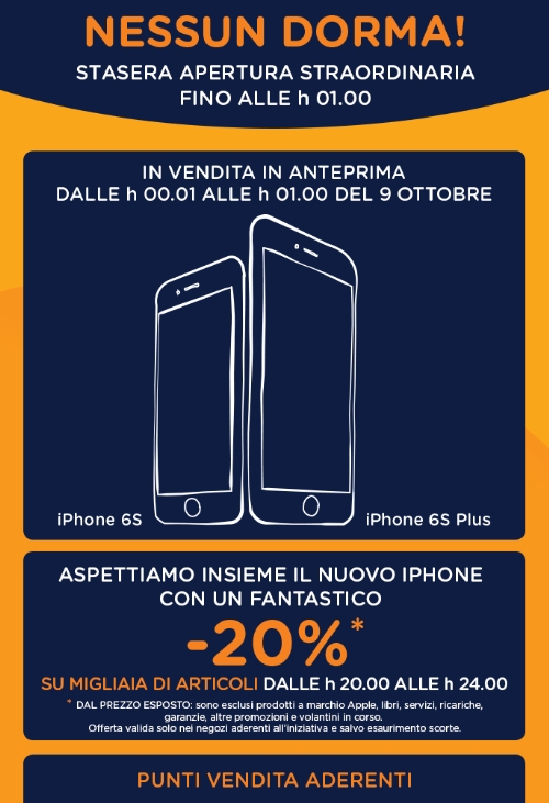 'Nessun Dorma in Unieuro': notte bianca in 15 punti vendita per l'arrivo di iPhone 6S