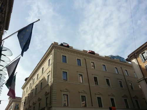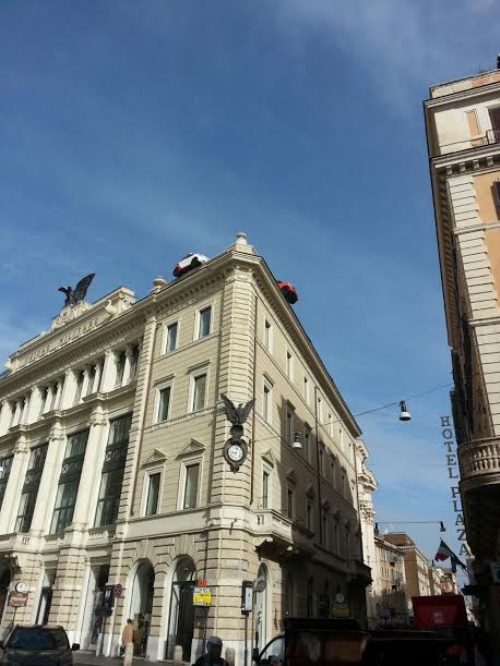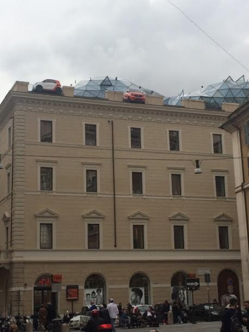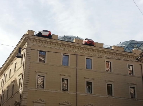Chissà cosa hanno pensato le persone che la mattina di venerdì 27 marzo hanno visto quattro smart come scendere dal cornicione del Palazzo dell'ex Unione Militare in via del Corso a Roma...