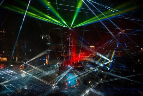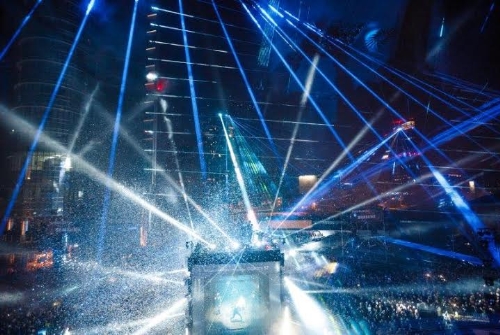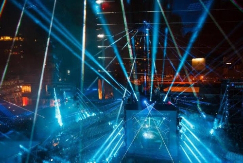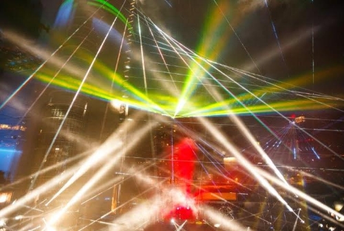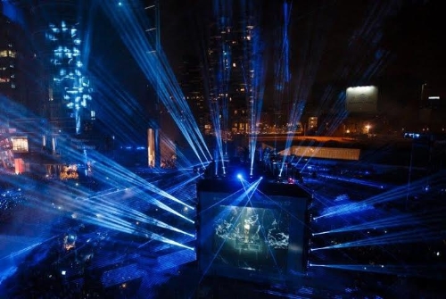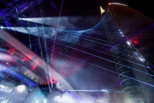 Lo spettacolo è stato possibile grazie a un cubo centrale da cui nasce tutto lo show, e a oltre 100 fari dislocati ai vertici della piazza e nei punti focali dell’installazione, a 260 postazioni laser e a oltre 400 specchi distribuiti sulla vetta dei grattacieli più importanti.