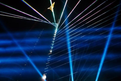 È nato così il primo city laser show, un progetto visionario che usa i codici dell’installazione artistica, vibrante e 360° per regalare alla città una notte unica, una installazione sonora e visiva per luci laser e suono, potente, melodica, ritmica e sospesa.