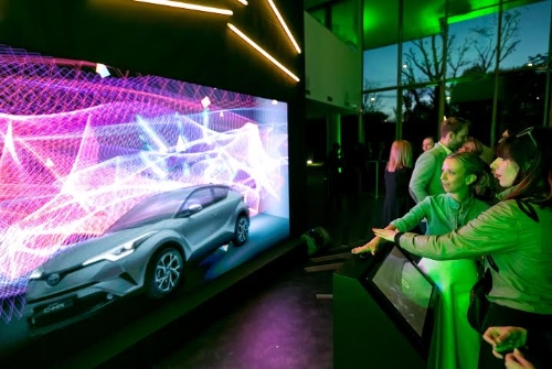 Oltre ad ammirare il nuovo Toyota C-HR, è stato possibile liberare la propria creatività grazie a una installazione di generative art che ha permesso di dar sfogo alla propria vena artistica, disegnando digitalmente su un megaschermo linee e figure ispirate al design sinuoso della vettura (vedi notizia correlata a fondo pagina).