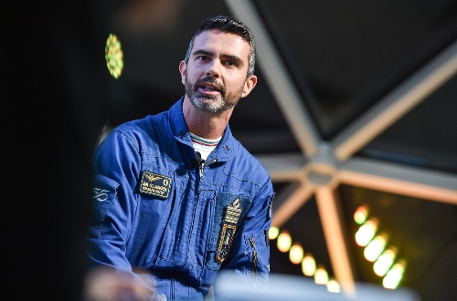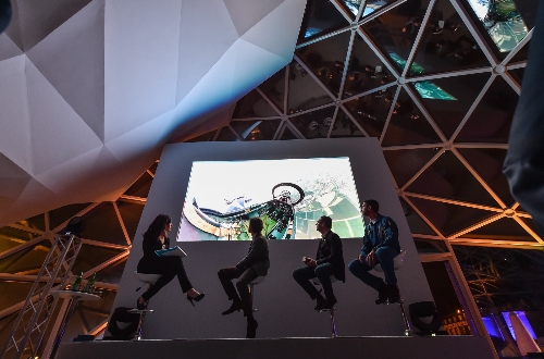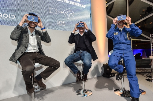 Stefania Pinna, giornalista di SkyTg24 con Alberto Calcagno, amministratore delegato di Fastweb, Luca Colombo, country manager Italia di Facebook, e Jan Slangen, comandante delle Frecce Tricolori, hanno accompagnato il pubblico dell’evento nell’experience di volo, vissuta in simultanea indossando i cardboard ricevuti all’accredito e usando il proprio smartphone con caricata l’app dell’evento.