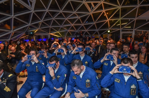 Frecce Tricolori, rappresentanti della Aeronautica Militare, top clients e business partner di Fastweb hanno provato in esclusiva l’esperienza del volo immersivo a 360° a bordo delle Frecce Tricolori durante la serata organizzata
