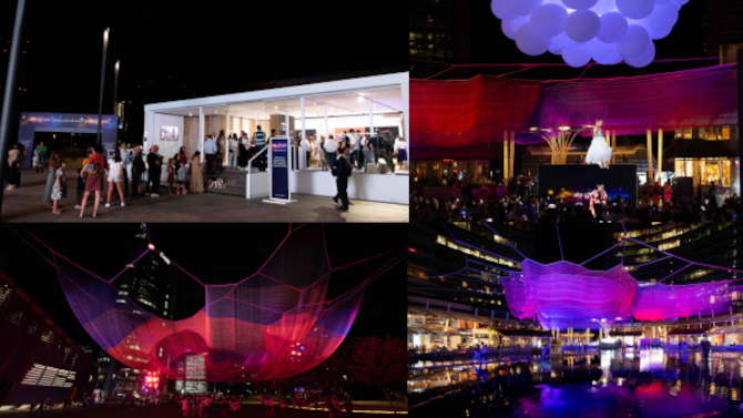 Le installazioni sono state accese durante l’Opening con uno show del cast artistico Molecole Show: uno spettacolo aereo dal forte impatto visivo dove i ballerini hanno danzato tra le due opere fluttuando nell’aria e illuminando così tutta l’installazione sotto gli occhi stupiti degli spettatori.