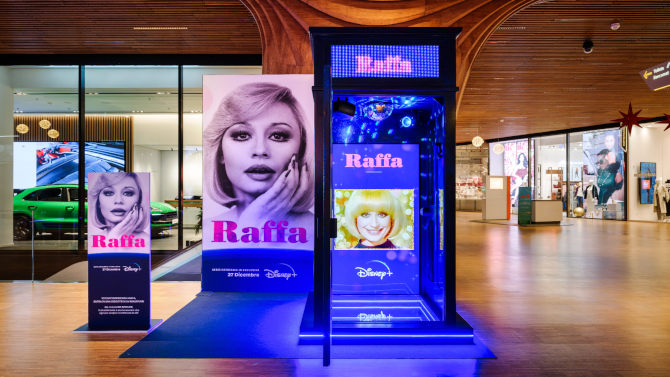 Per celebrare il debutto su Disney+ di Raffa, la prima docuserie originale dedicata a Raffaella Carrà, che arriverà il 27 dicembre sulla piattaforma streaming, a Milano presso CityLife Shopping District sarà possibile vivere un’esperienza unica. Dal 22 dicembre al 7 gennaio (tranne le giornate del 25/12 e 01/01) si potrà infatti entrare in quella che all'apparenza sembrerà una semplice cabina telefonica, ma che in realtà sarà una vera e propria discoteca in miniatura. Ispirata a “Pronto Raffaella” questa speciale installazione sarà animata da musica, luci e colori e farà immergere tutti i fan nelle mitiche atmosfere del mondo di Raffaella Carrà.