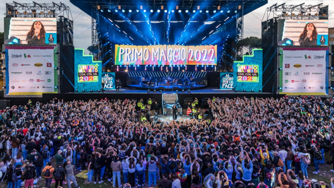 Dopo due anni di pandemia particolarmente difficili e nell’attuale momento tragico di guerra in Ucraina, il Concerto del Primo Maggio 2022 ha assunto un significato simbolico e profondo: confrontarsi sul presente per affrontare il futuro con responsabilità, visione e speranza. “Al lavoro per la pace” è lo slogan che CGIL, CISL e UIL hanno scelto per la Festa dei lavoratori 2022. Un racconto collettivo attraversato da tanta musica che ha restituito una fotografia attendibile della scena italiana di oggi e di domani ospitando - rigorosamente dal vivo - alcune delle nuove e più rilevanti realtà affiancate a nomi storici e icone della musica italiana. L’evento è stato presentato - per il quinto anno consecutivo - da AMBRA ANGIOLINI affiancata da BUGO con spazio a tutti gli artisti del concertone per un grande racconto collettivo.